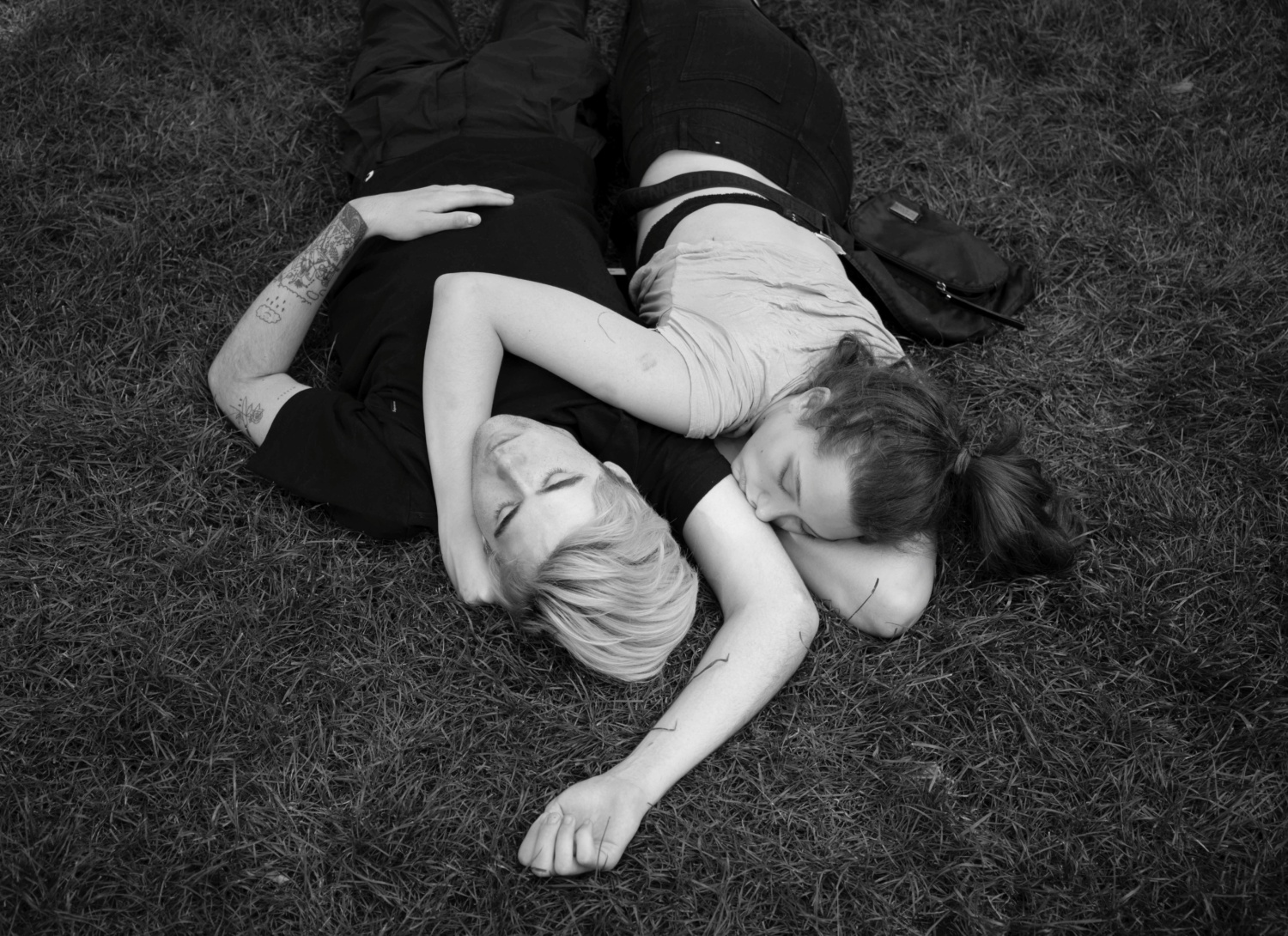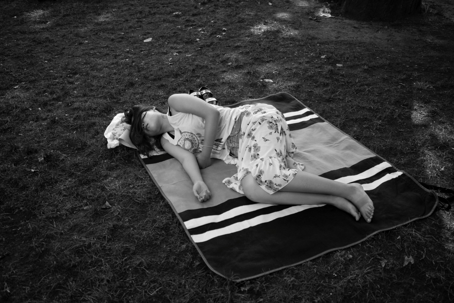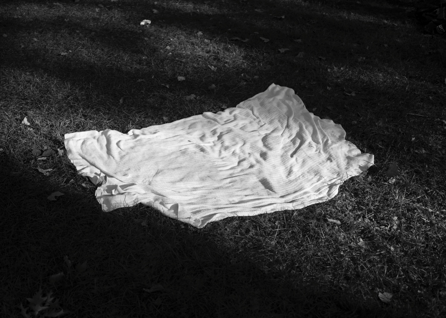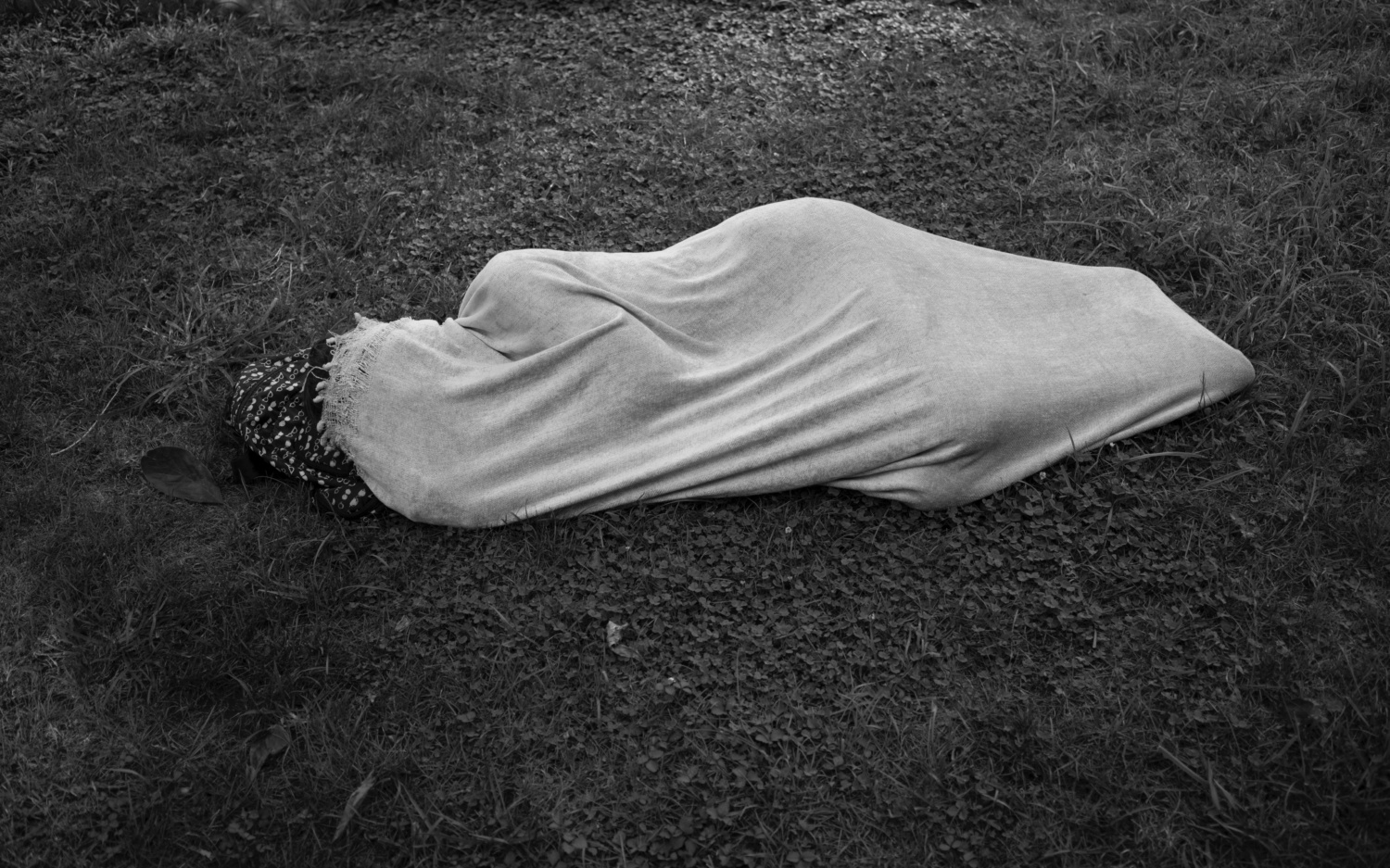 After about three years of working on The Chair Pictures, I began feeling I’d explored as many permutations as I could think of with nothing but the wooden chair. I returned to my first love, street photography. While I continued to take the kinds of street pictures I had in the past, I also found myself intuitively breaking one of my own rules: To ask if I may before I took someone’s photo. The first picture I took in the Sleepers in the Park series is also the first presented here: a young couple asleep on the grass, their bodies intertwined. There was something so arresting about the graphic quality of their pose, as well as the tenderness expressed by their embrace. I couldn’t resist.