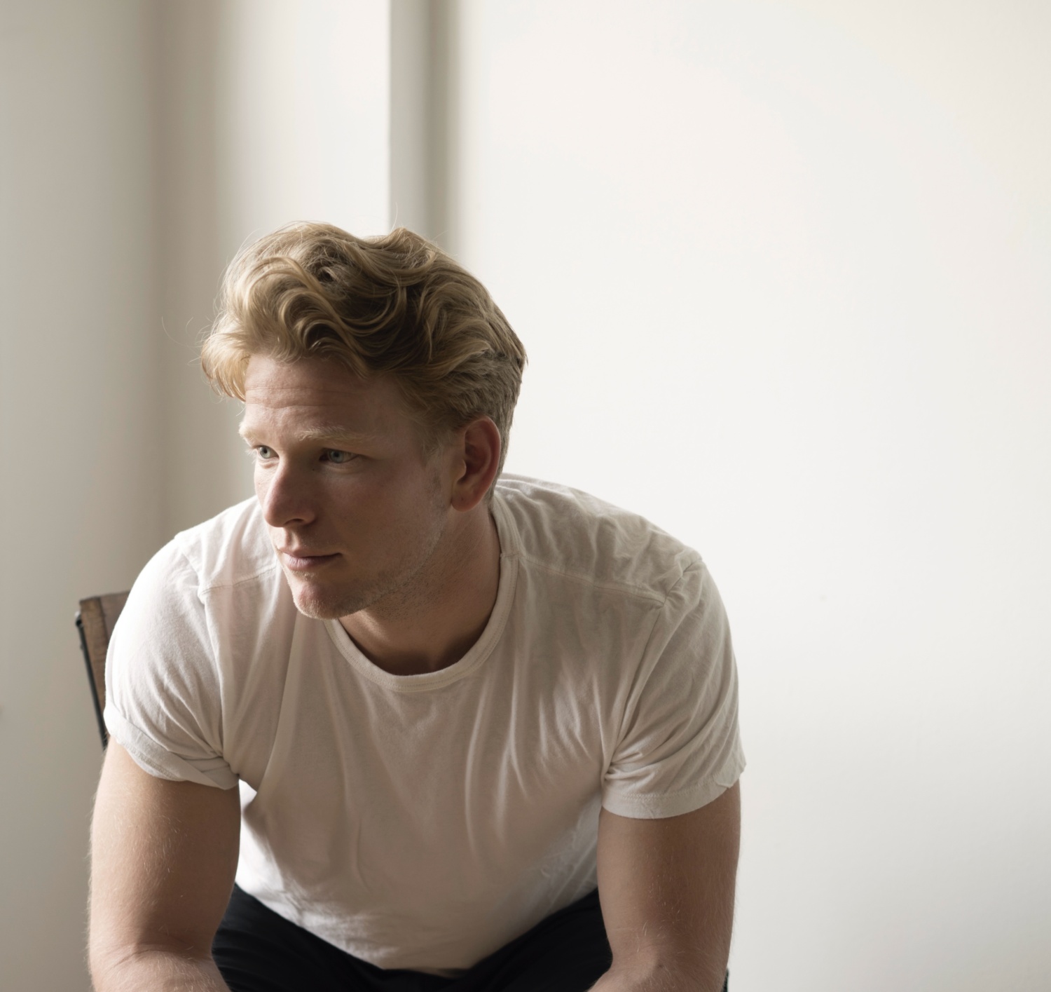 Unlike the chair in “The Chair Pictures,” which has an almost Amish austerity, the piano bench has a personality that comes through in photos. A model has to step up, even show off, to compete with that small but sturdy, modest yet flamboyant, old but timeless, beautifully crafted piece of furniture. One day it hit me why. It’s not just what it looks like; it’s also what it represents to me. The piano bench is Oliver incarnate: commenting, smiling, observing, enjoying the beauty—the human music—of the various men photographed on it.